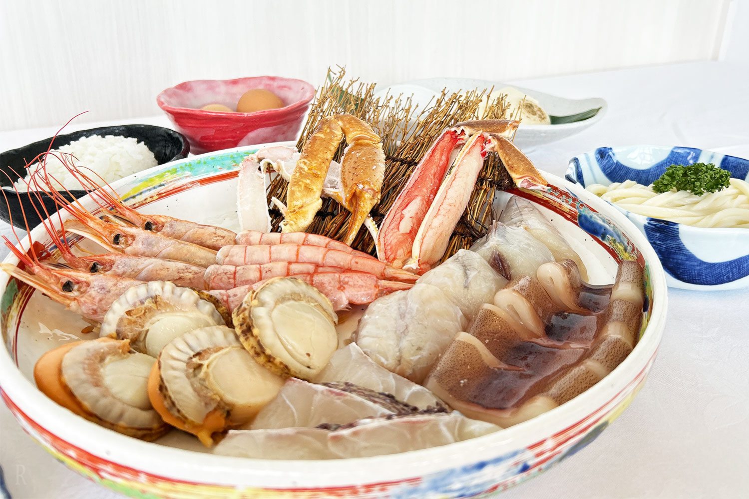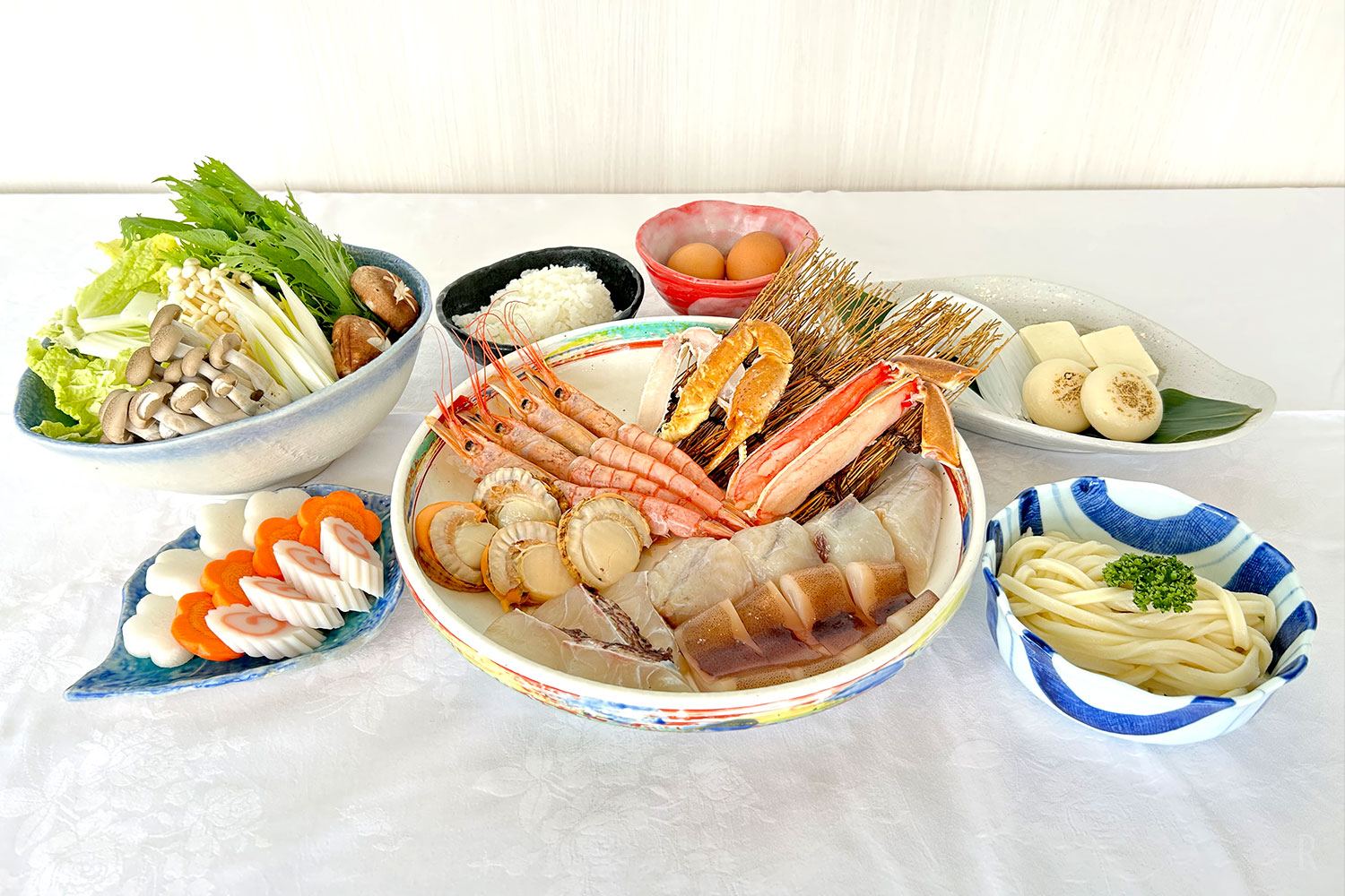 蟹や海老などの“赤”、鯛や旬の野菜の“白”が出汁に溶け合い、香川ならではの豊かな旨みがぎゅっと一つに。